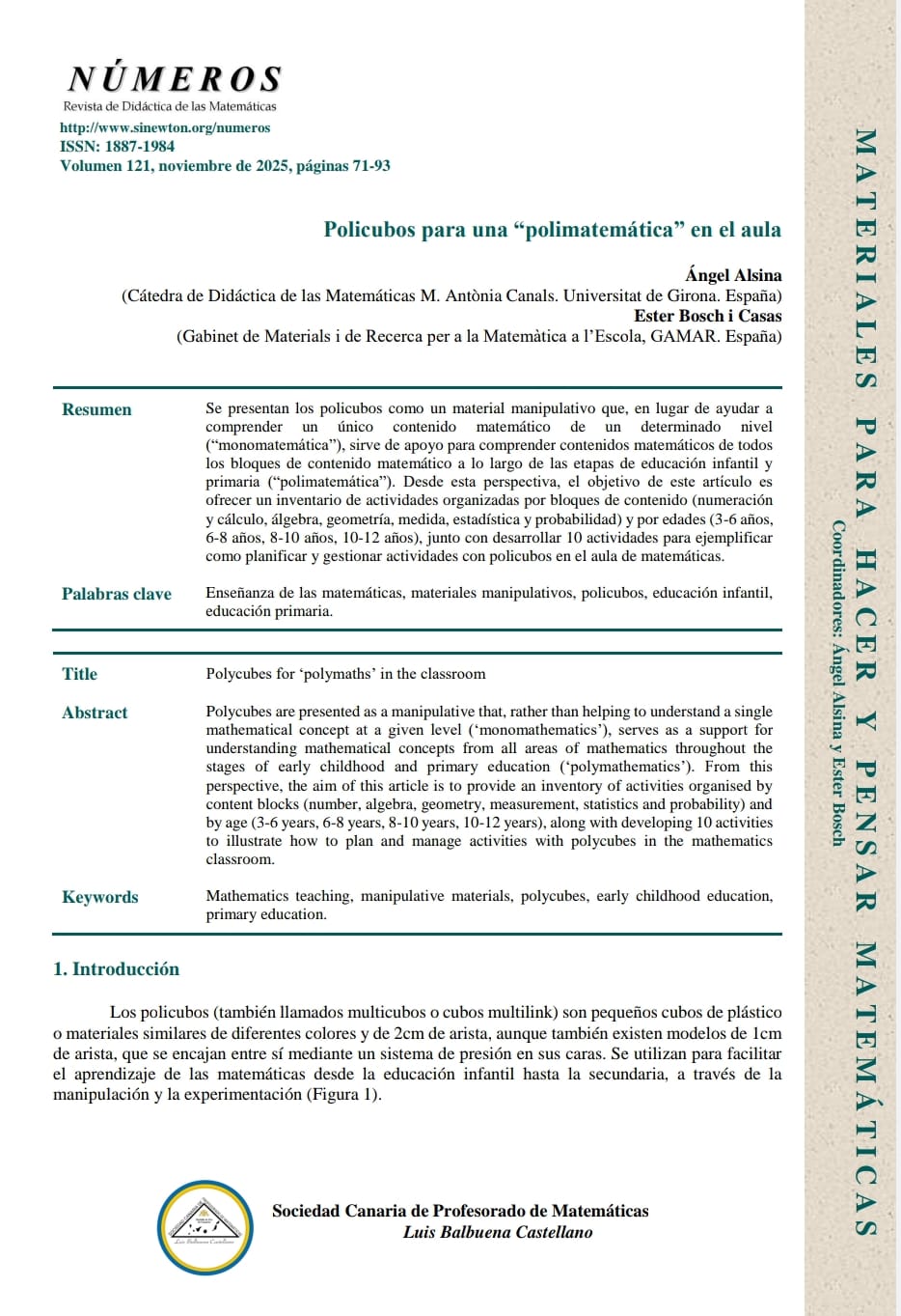 Publicat a: Revista Números. Revista de Didáctica de las Matemáticas, (Volum: 119, Pàgines: 73 – 89)