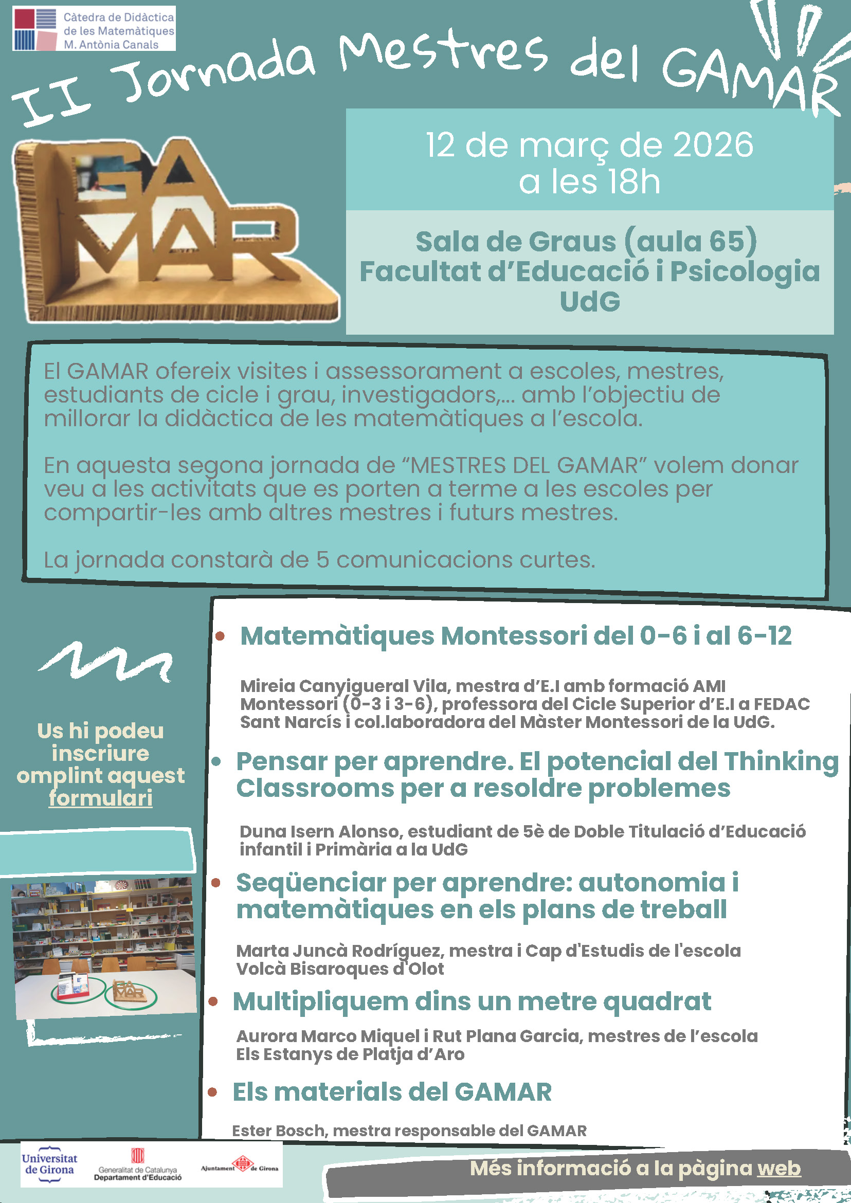 En les jornades “Mestres del GAMAR” volem donar veu a les activitats que es porten a terme a les escoles per compartir-les amb altres professionals.